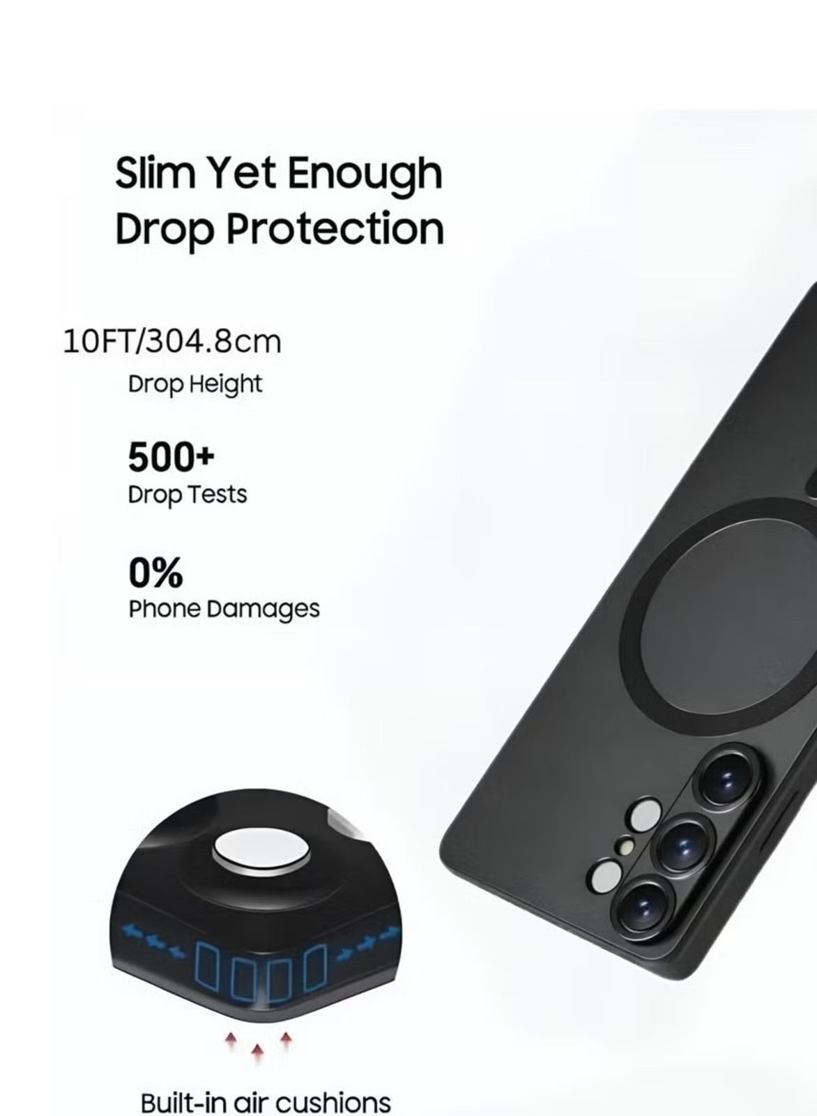 Bring your Samsung Galaxy to the next level with this luxury matte magnetic case designed for those who want style, protection, and advanced functionality in one. Featuring a soft bumper build, integrated lens protector, and shockproof edges, this case keeps your device safe while maintaining a sleek, elegant look. The strong magnetic alignment ensures smooth wireless charging without removing the case.