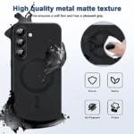 Bring your Samsung Galaxy to the next level with this luxury matte magnetic case designed for those who want style, protection, and advanced functionality in one. Featuring a soft bumper build, integrated lens protector, and shockproof edges, this case keeps your device safe while maintaining a sleek, elegant look. The strong magnetic alignment ensures smooth wireless charging without removing the case.