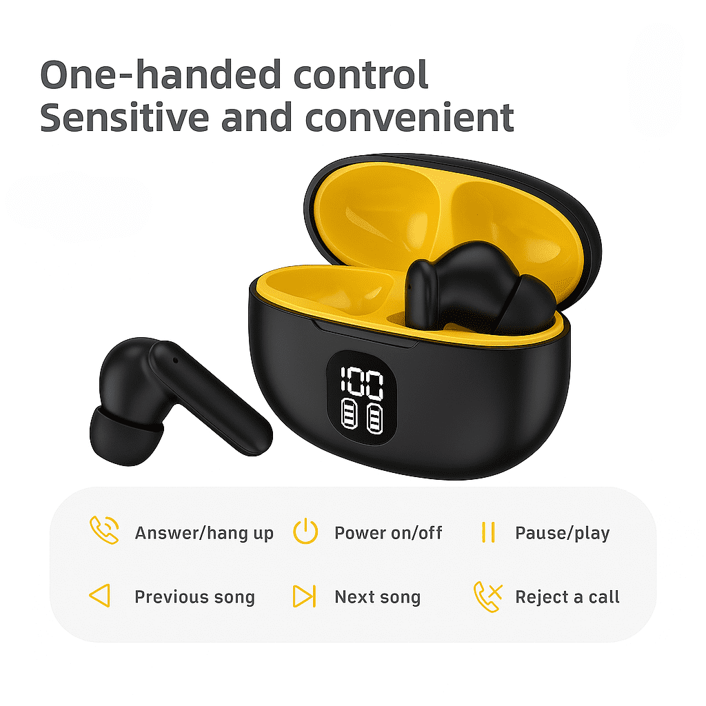 Wireless Earphones – Enjoy premium sound with Active Noise Cancellation for clear audio anywhere. The LED display charging case keeps you powered, while lightweight, ergonomic design ensures all-day comfort. With HD mic and hands-free control, stay connected for calls, music, and gaming in style.